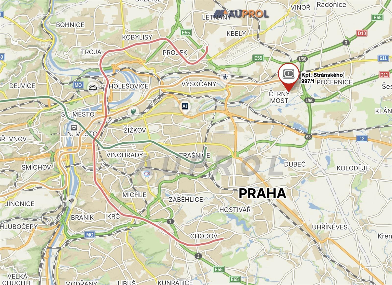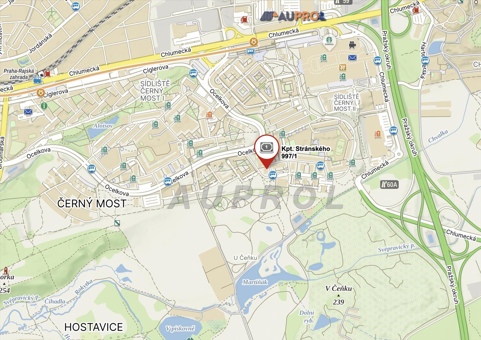 OKOLÍ - Skvělá poloha - klidná část Černého Mostu s kompletní občanskou vybaveností (ZŠ, MŠ, obchody i restaurace). Samotný dům leží hned vedle dětského sportovního hřiště, rozsáhlého přírodního parku s rybníky a golfovým resortem. Autobusová zastávka Bryksova přímo před domem. Metro 15 minut chůze. OC Černý Most 12 minut chůze. Rychlý nájezd na pražský okruh i na Mladou Boleslav, Hradec Králové a Pardubice