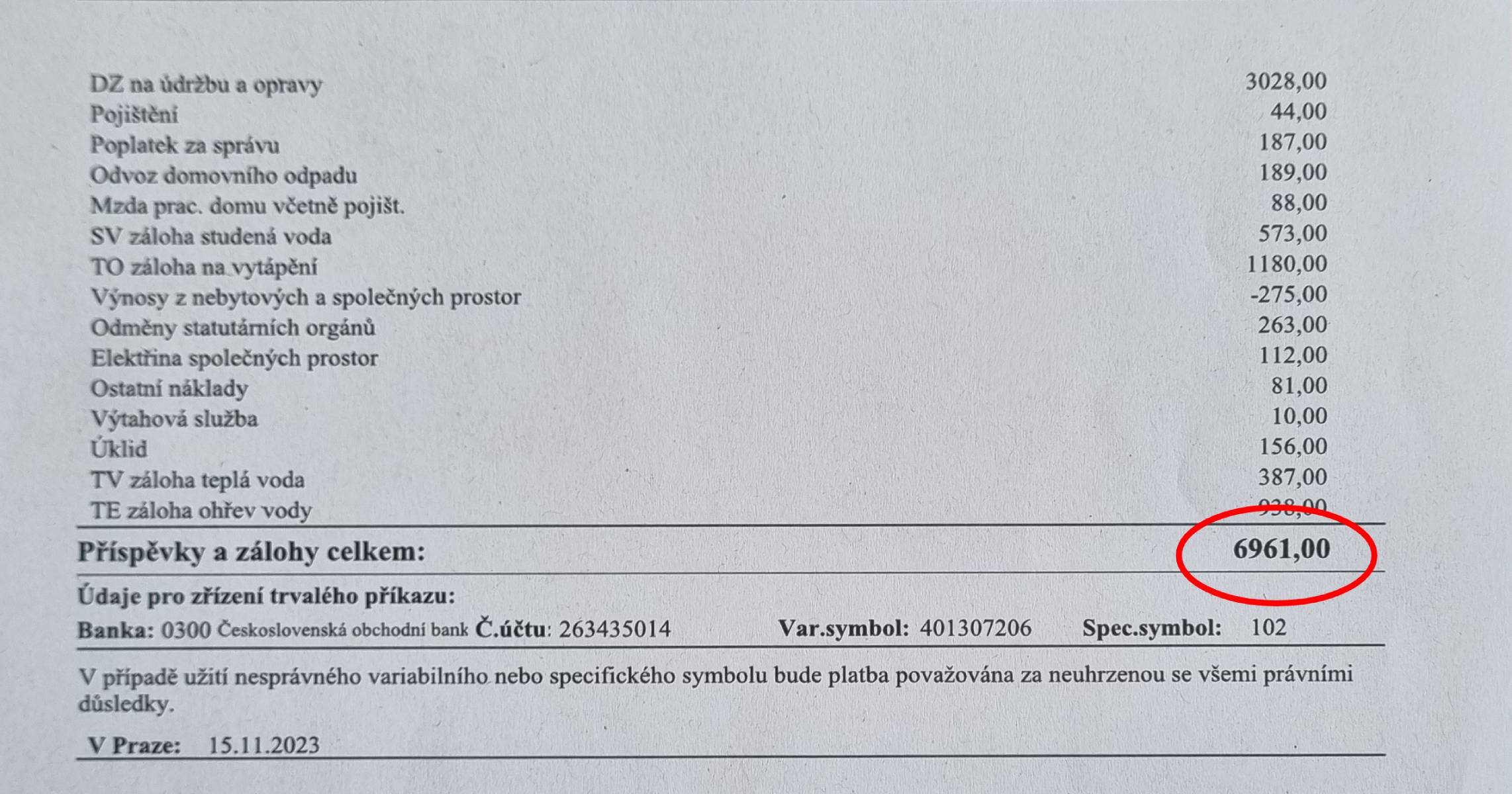 POPL – 6961 Kč/měs. vč. 3028 Kč do FO + el. dle spotřeby, uspokojivé náklady vzhledem k velikosti bytu